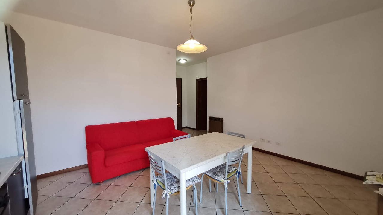 Completo di arredo cucina, tavolo con sedie, camera matrimoniale, soggiorno con divano e lavatrice.