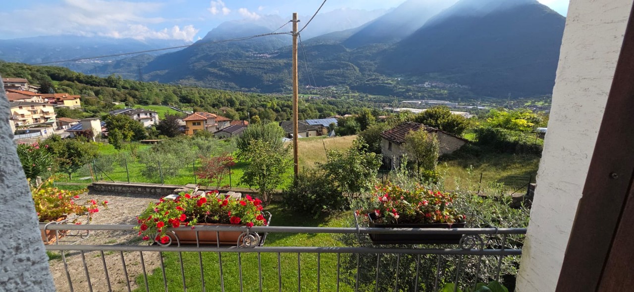 La casa dispone di due camere da letto, doppi servizi e un ampio terrazzo che regala una splendida vista sulla Vallecamonica.