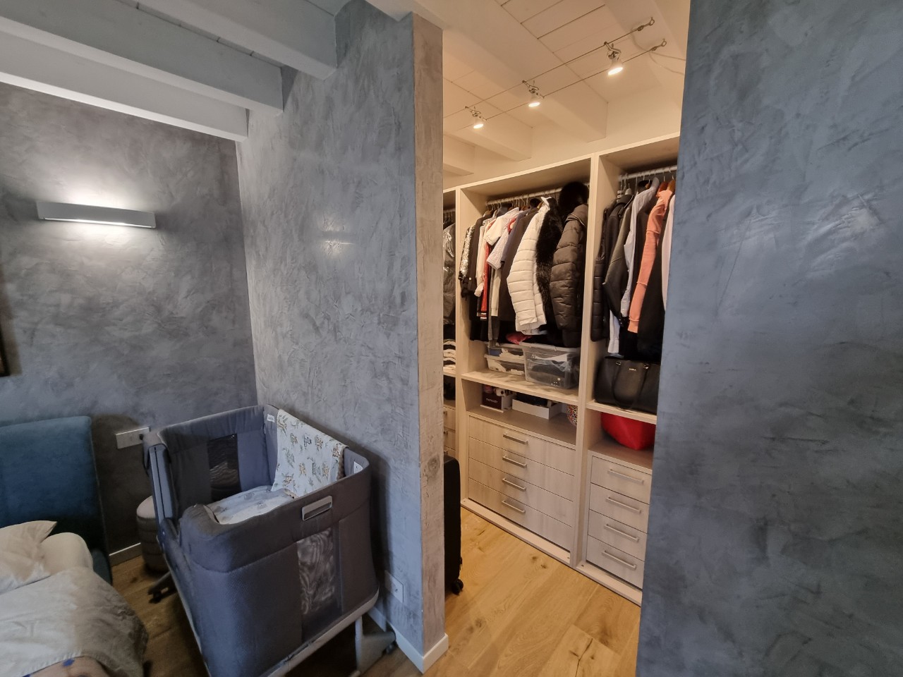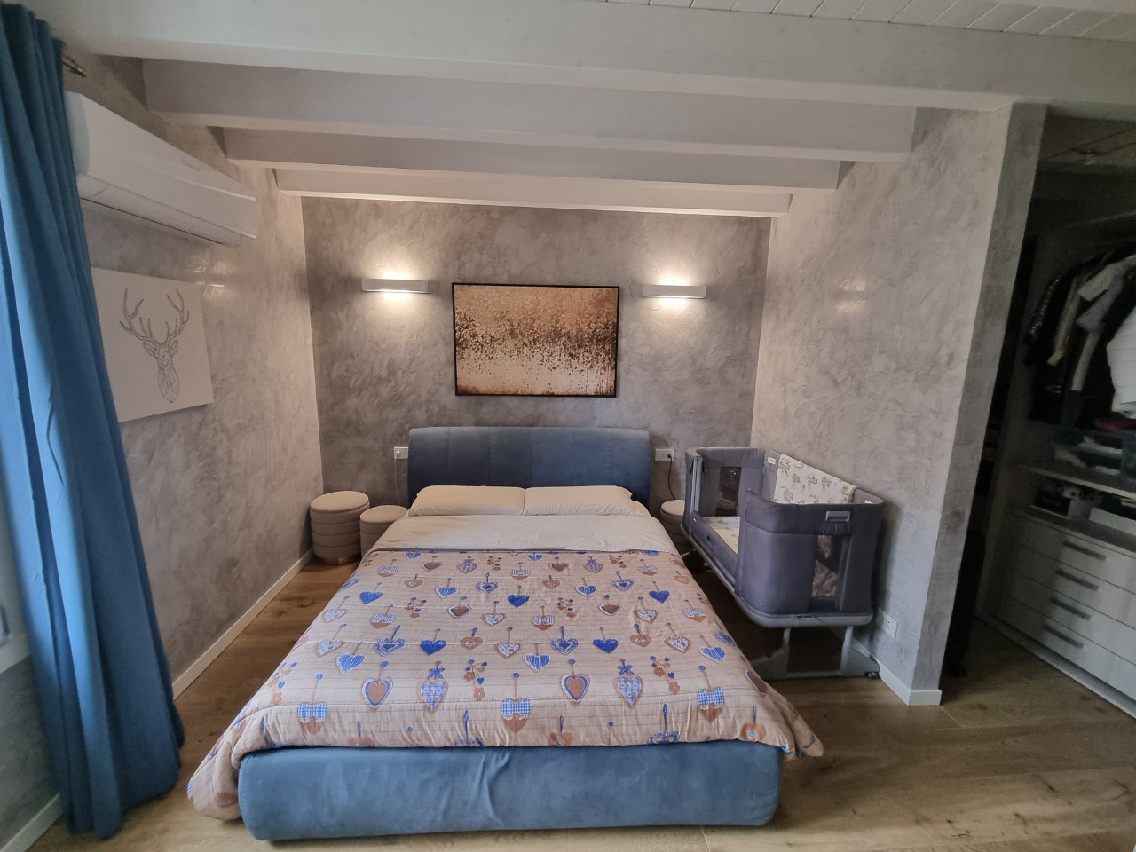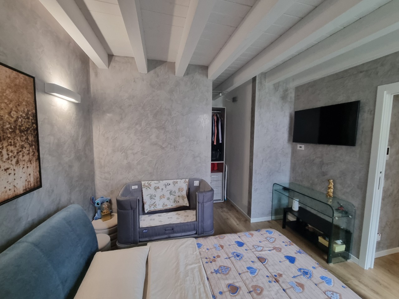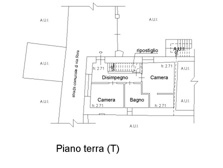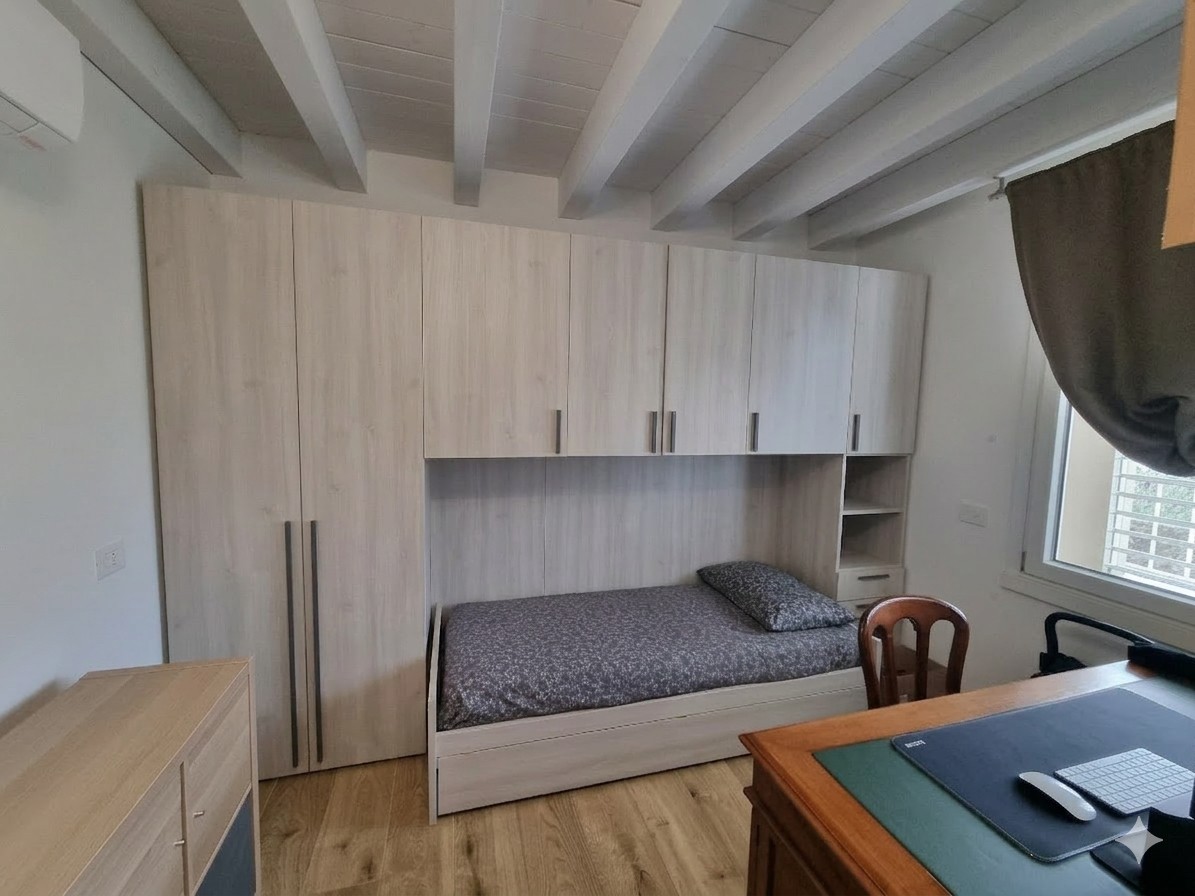 Piano Terra: camera matrimoniale con cabina armadio, cameretta singola e bagno con doccia.