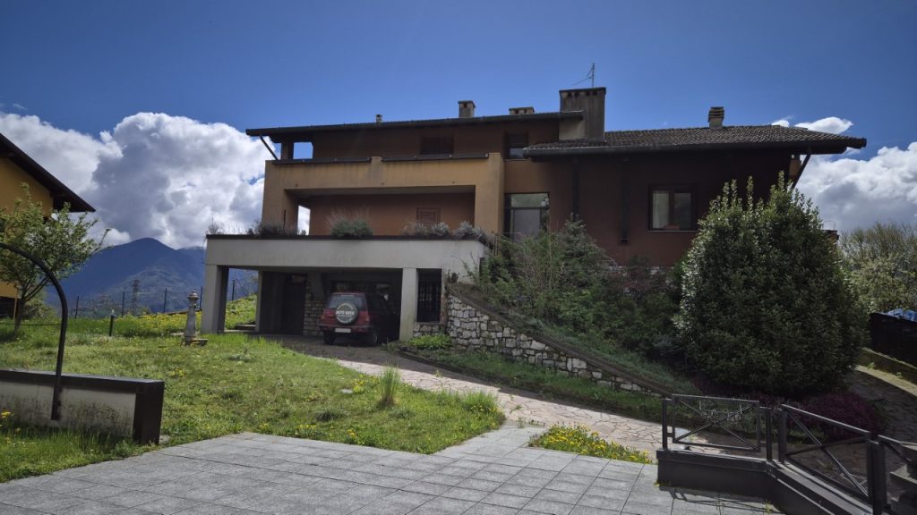 A Ossimo Inferiore, in posizione dominante, molto soleggiata e panoramica ma a pochi passi dalla piazza principale, proponiamo in vendita una villa singola circondata da circa 1.500 mq di terreno privato e recintato. La proprietà, costruita nel 1975, si distingue per il suo stile particolare e per gli spazi generosi e ben distribuiti. L’abitazione principale si sviluppa al piano rialzato e comprende una comoda zona notte con tre camere da letto e un bagno padronale. La zona giorno è ampia e luminosa, caratterizzata da un suggestivo camino centrale che separa il soggiorno dalla sala da pranzo. Da qui si accede a un soppalco a vista sulla zona giorno, attualmente utilizzato come studio, ideale come spazio di lavoro o angolo relax. Completano il piano una cucina abitabile separata, spaziosa e funzionale, e una grande terrazza panoramica affacciata sulla valle. Al primo piano si trova un appartamento trilocale indipendente, composto da soggiorno con camino, cucina abitabile, due camere da letto e un bagno, perfetto per ospiti o per creare una seconda unità abitativa autonoma. Il piano seminterrato ospita una grande taverna ideale per momenti conviviali, oltre a locali accessori come cantine, lavanderia e cinque box auto.