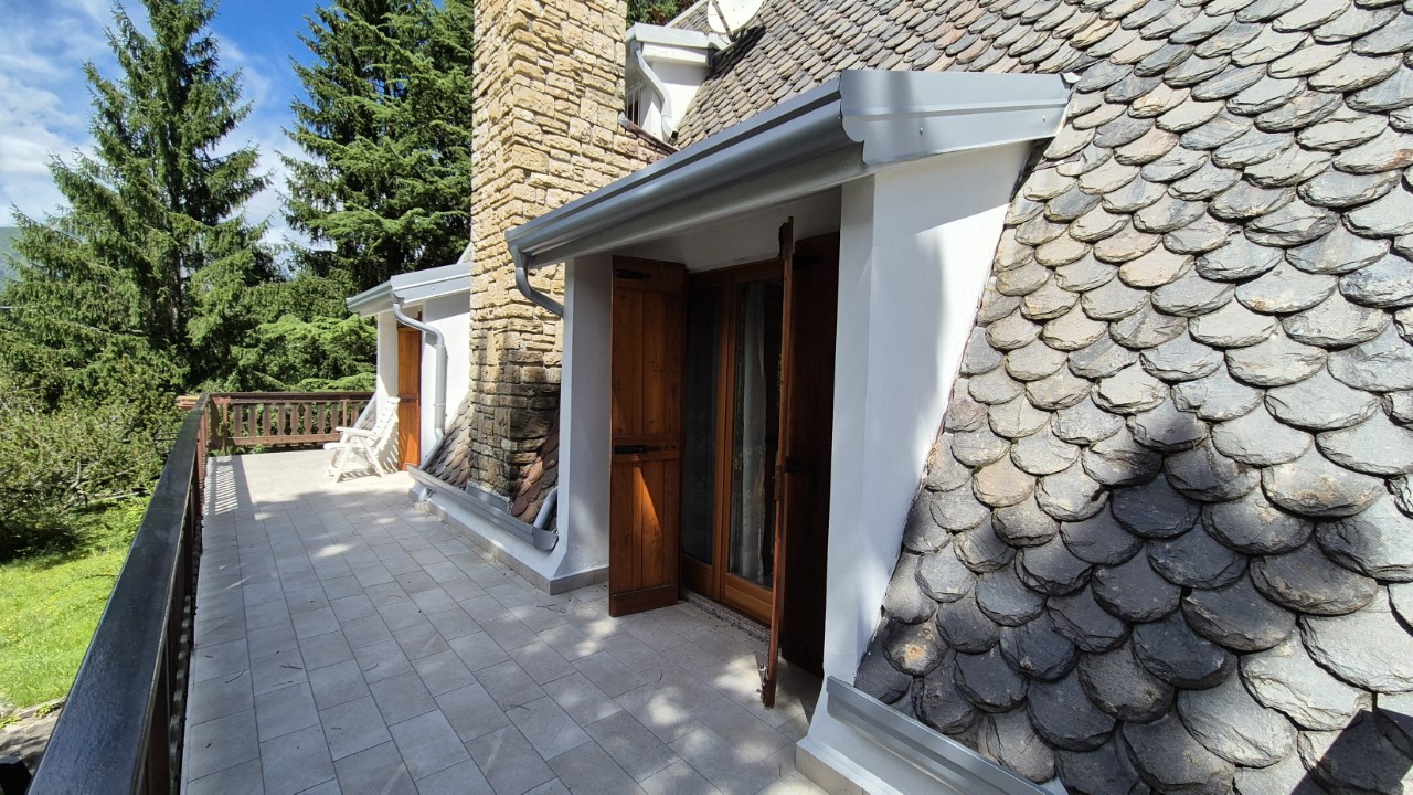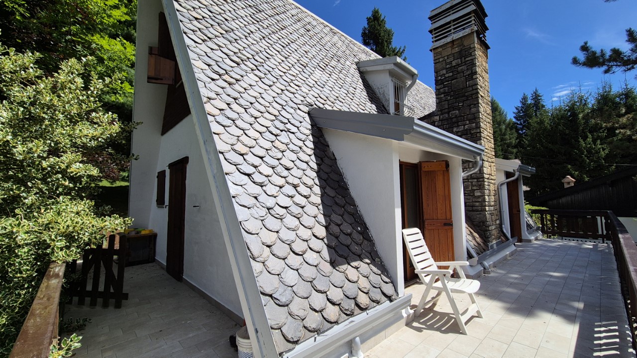 A Borno, nella splendida e ricercata zona della Croce di Salven proponiamo in vendita un’elegante villetta singola circondata da terreno privato pianeggiante e interamente recintato, ideale per chi cerca privacy, tranquillità e natura. L’abitazione, realizzata in autentico stile alpino con tetto a punta in cemento armato e rivestimento in ardesia, si sviluppa su tre livelli fuori terra e si presenta in ottime condizioni grazie ai serramenti nuovi e al recente rifacimento di tetto e terrazza. Al piano seminterrato troviamo box, cantina, taverna con stufa a pellet e locale lavanderia con servizio; al piano rialzato un’ampia e luminosa zona giorno con camino e terrazza vivibile, cucinino, disimpegno, spaziosa camera matrimoniale con parquet e bagno; al primo ed ultimo piano la zona notte, completamente rivestita in legno, composta da due camere e bagno con doccia. Esposta a sud e baciata dal sole per tutto il giorno, la casa gode di un incantevole panorama e di un contesto naturale di grande fascino, pur essendo comodamente raggiungibile. Riscaldamento a gas metano affiancato da camino e stufa a pellet. Una soluzione di charme, perfetta sia come prima casa sia come residenza per le vacanze in montagna.